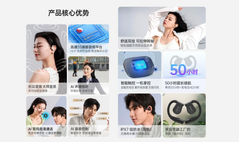當(dāng)然,除了音質(zhì)與AI之外,Cleer ARC 3 音弧帶給你的舒適呵護(hù)也是獨(dú)一無二的。為了進(jìn)一步提升舒適體驗(yàn),Cleer ARC 3 音弧在開放式耳機(jī)基礎(chǔ)上,獨(dú)創(chuàng)了可拉伸旋轉(zhuǎn)的耳掛設(shè)計(jì),可以根據(jù)你的耳朵大小個(gè)性化調(diào)整耳掛的長短及旋轉(zhuǎn)角度,帶來量身定制的舒適佩戴體驗(yàn)。即便連續(xù)佩戴3、4個(gè)小時(shí),耳朵也不會感到壓迫或疼痛,無論是在辦公桌前埋頭工作,還是在沙發(fā)上追劇放松,這種“云感佩戴”讓你忘記耳機(jī)的存在,沉浸在純粹的音樂世界里。