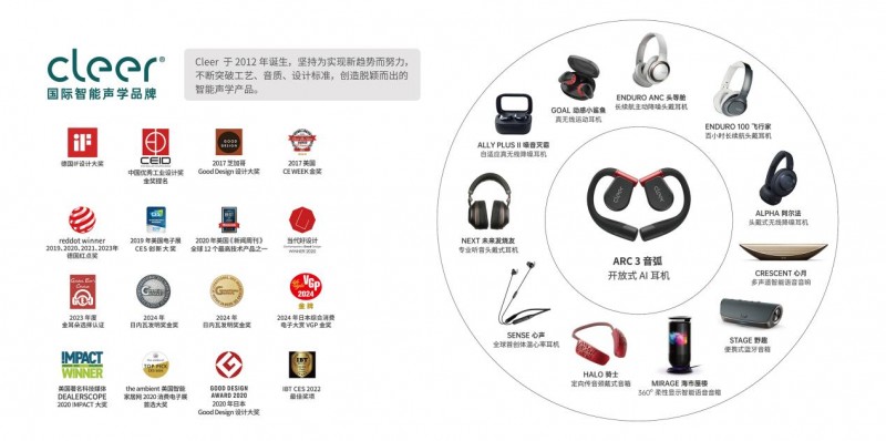 在聲學(xué)技術(shù)領(lǐng)域的不斷突破,也讓Cleer贏得了廣泛的行業(yè)認(rèn)可。至今,Cleer品牌已斬獲國(guó)內(nèi)外60+項(xiàng)創(chuàng)新創(chuàng)意獎(jiǎng)項(xiàng)。這些獎(jiǎng)項(xiàng)不僅是對(duì)Cleer產(chǎn)品創(chuàng)新能力的高度肯定,更是其國(guó)際化品牌形象的有力支撐。
